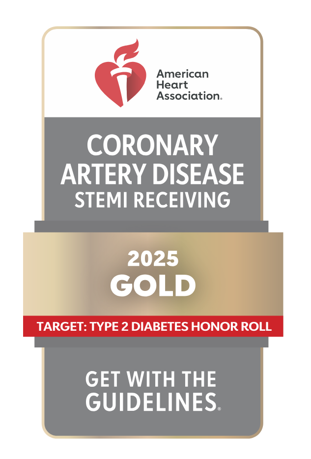 Washington Health received the American Heart Association’s Get With The Guidelines® – Coronary Artery Disease STEMI Receiving Center Gold recognition for its commitment to offering rapid, research-based care to people experiencing a specific type of heart attack known as an ST elevation myocardial infarction (STEMI), known to be more severe and dangerous than other types of heart attacks. (2025)