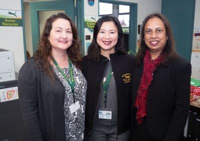 Julie is forever thankful to her co-workers for helping her seek medical attention right away. Here, she is pictured in the Mission Hills Middle School administration office with Melanie Kirksey, left, and Lata Nigam, right. She’s long-since been back to her busy life of kids, family and work. She checks her blood pressure twice a day and takes anticoagulant medications to prevent blood clots and another stroke. “Looking back, the whole experience seems sort of vague. I don’t remember a lot about what happened, but I do know that everyone certainly gave me the best possible care,” she said. “My colleagues, emergency medical services and everyone at Washington Health played an amazing role in quickly saving my life, and I am eternally grateful.”