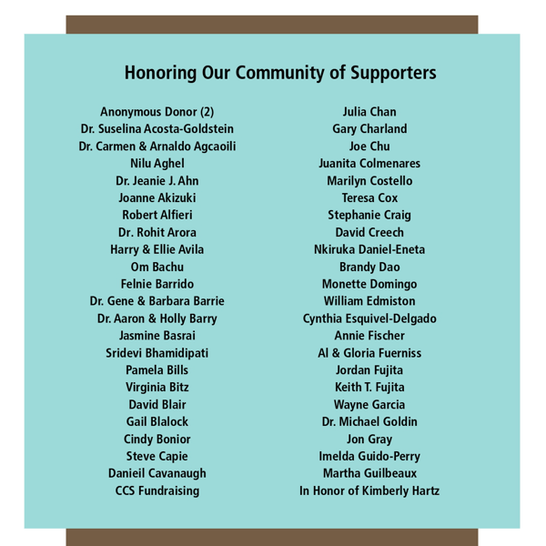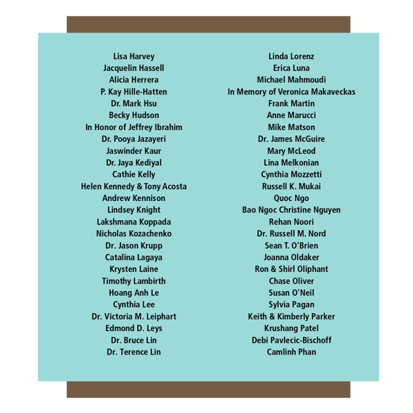 We gratefully recognize donors who made gifts at the community giving level—each contribution helping us build a future where exceptional cancer care is accessible to all.